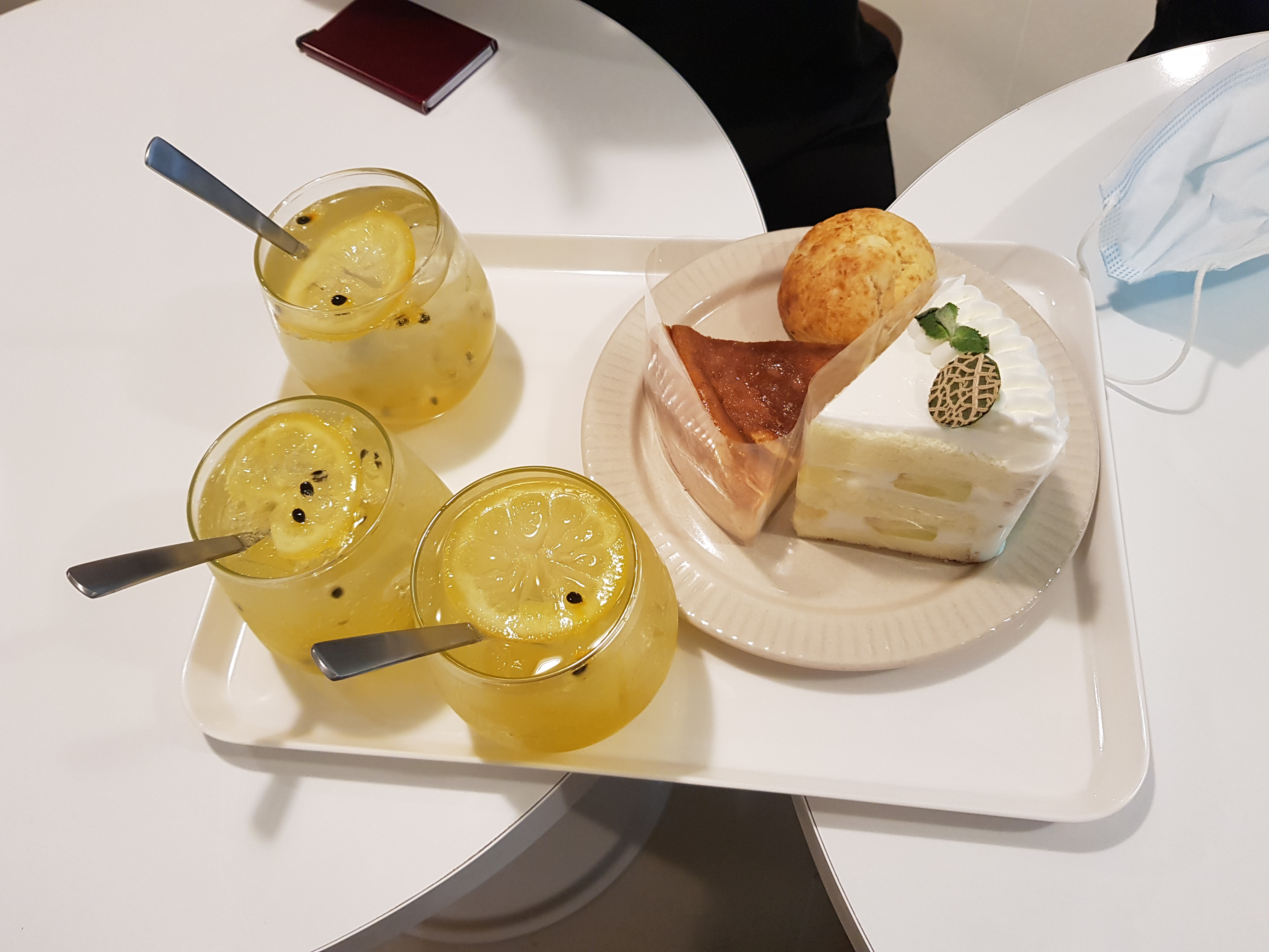 음료 세 잔에 메론생크림 케이크를 시켰는데 나머지 브레드는 서비스라며 주셨습니다