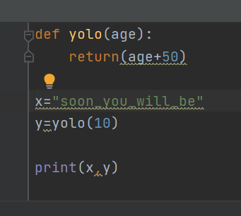 위 그림처럼 print 안에 yolo 함수와, yolo의 age에 해당하는 값을 넣어보았다.
