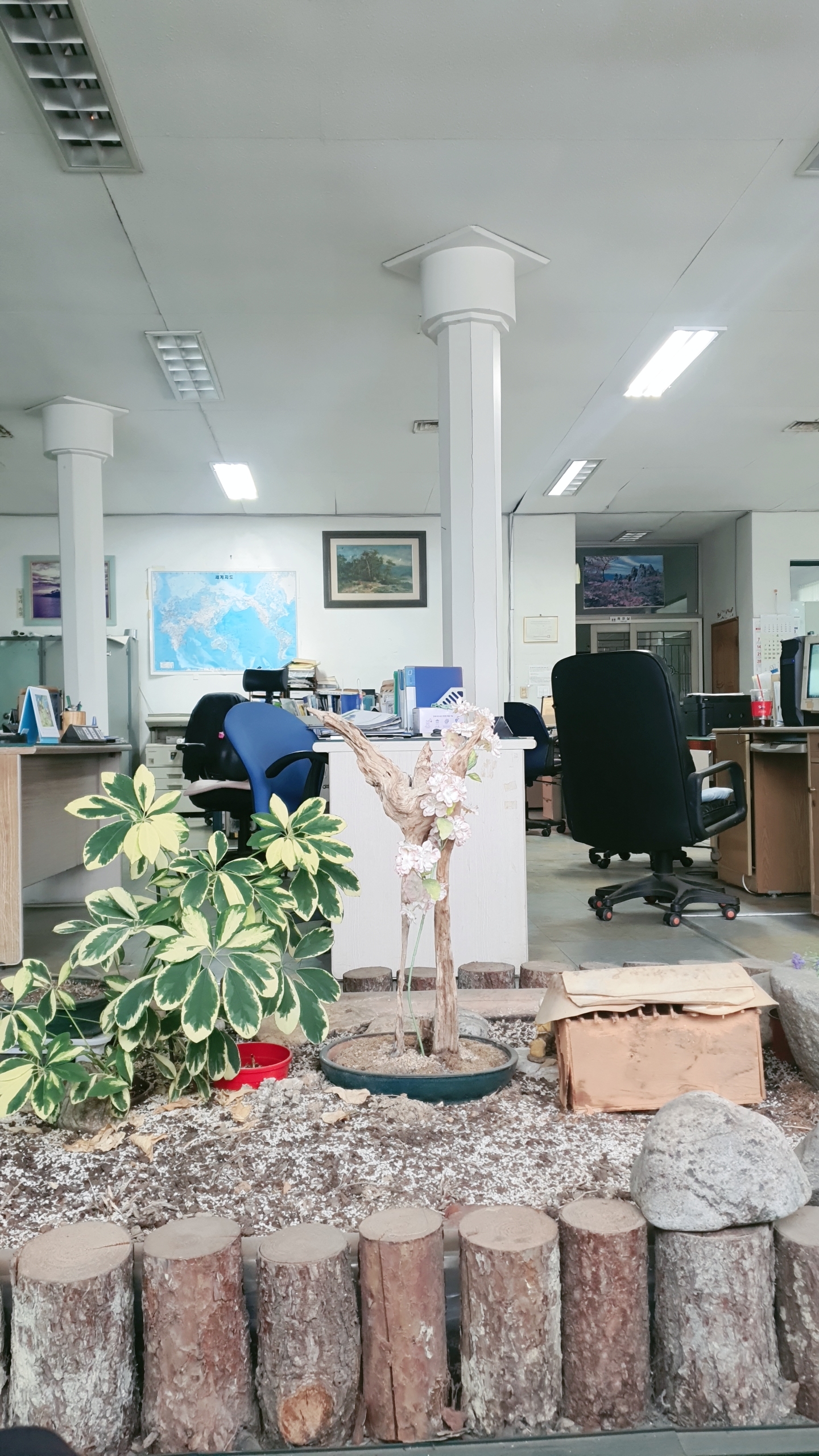 직원분들 오시면 복도에서 대기공간으로 안내 주시고 이것저것 안내 주신 다음에 직원분들 책상이 있고 라커와 음식 두는 선반이 있는 곳으로 안내해 주십니다.